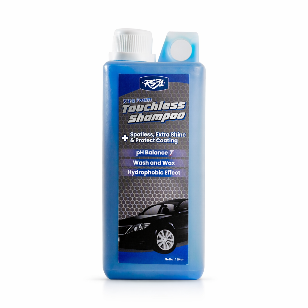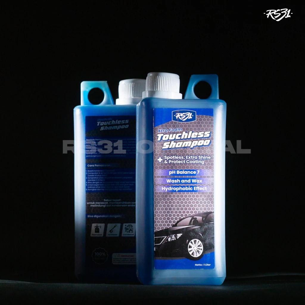RS31 Xtra Foam Touchless Shampoo sudah mengandung WAX. Cocok untuk merawat, membersihkan, serta mengkilapkan cat kendaraan. Sudah menggunakan pH balance 7 atau netral dan AMAN untuk cat kendaraan. Dilengkapi dengan kandungan WAX dan hydrophobic effect (efek daun talas) yang memberikan perlindungan pada cat kendaraan setelah dicuci.